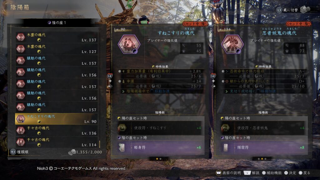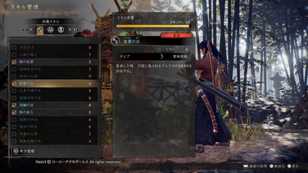 いくつかを組み合わせることで落命時のアムリタ消失リスクをかなり抑えることが可能。あまりに何度も何度も落命してしまうというプレイヤーは、とりあえず留霊の法だけでも付けておくのがおすすめ。