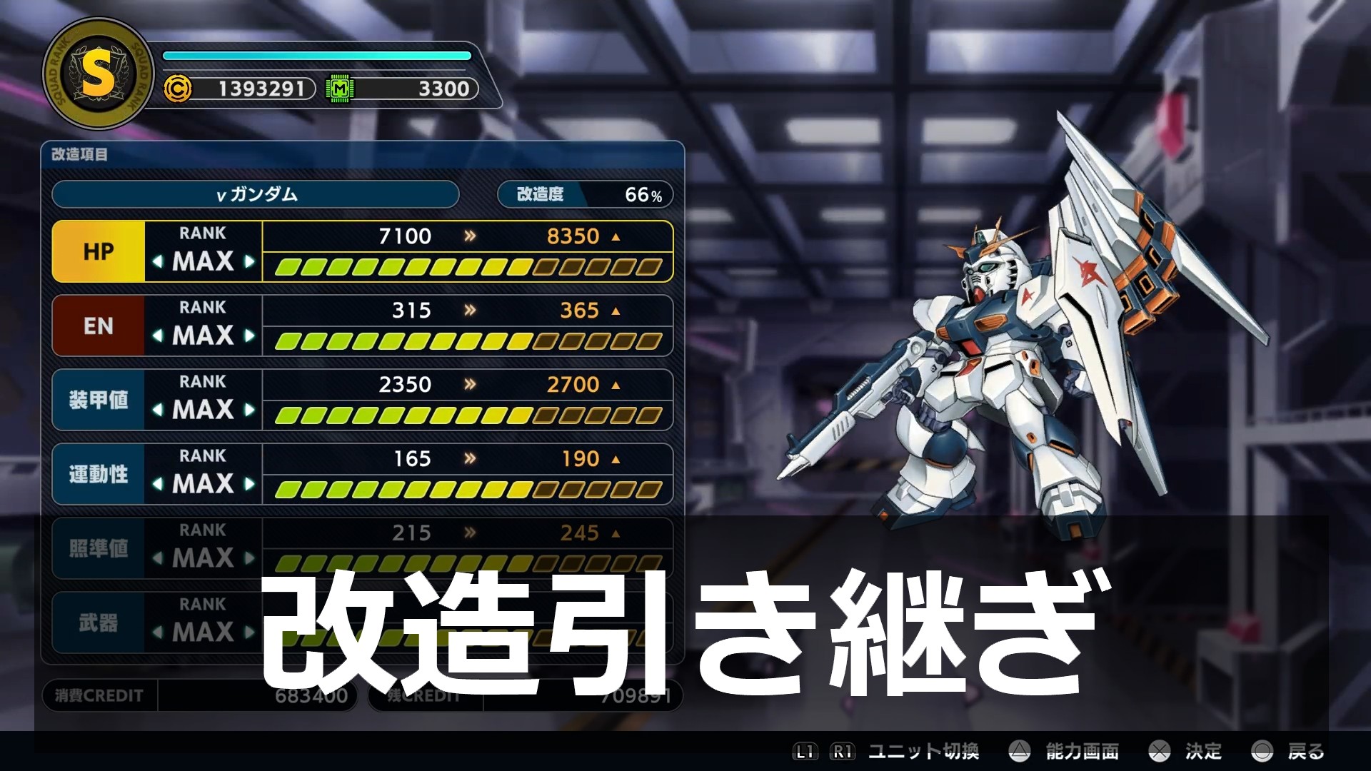 序盤の改造目標 強化パーツ DLC①で参戦。 変形移動だと思われるので、従来よりも移動力は高そう。 |